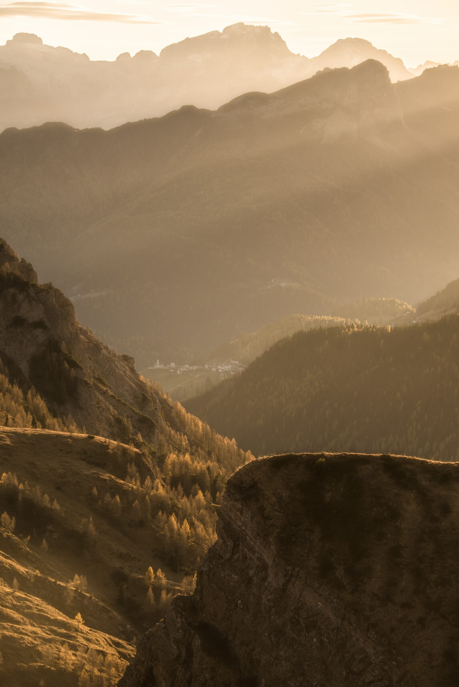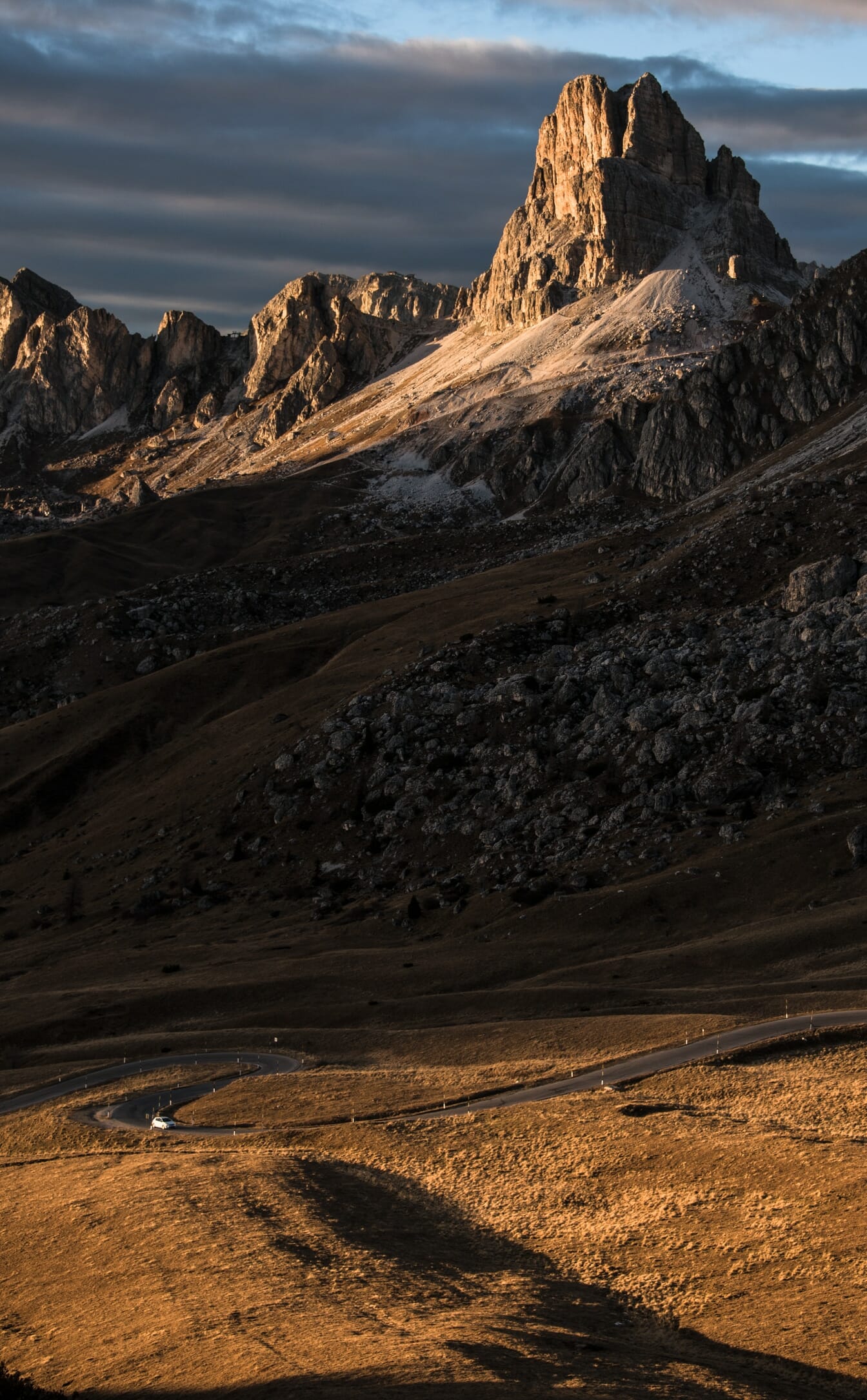Après une longue journée de route et une nuit réparatrice, voilà que j’ouvre les yeux sur un monde de pierre, d’éther et d’or. En cette fin d’automne, les mélèzes sont en feu et colorent les vallées d’une lueur presque divine. Le soleil joue avec les textures de la roche et exalte les montagnes, véritable sculpture de verticalité. Je n’ai pas encore fait une foulée sur les sentiers que, déjà, les Dolomites s’offrent dans toute leur grandeur.