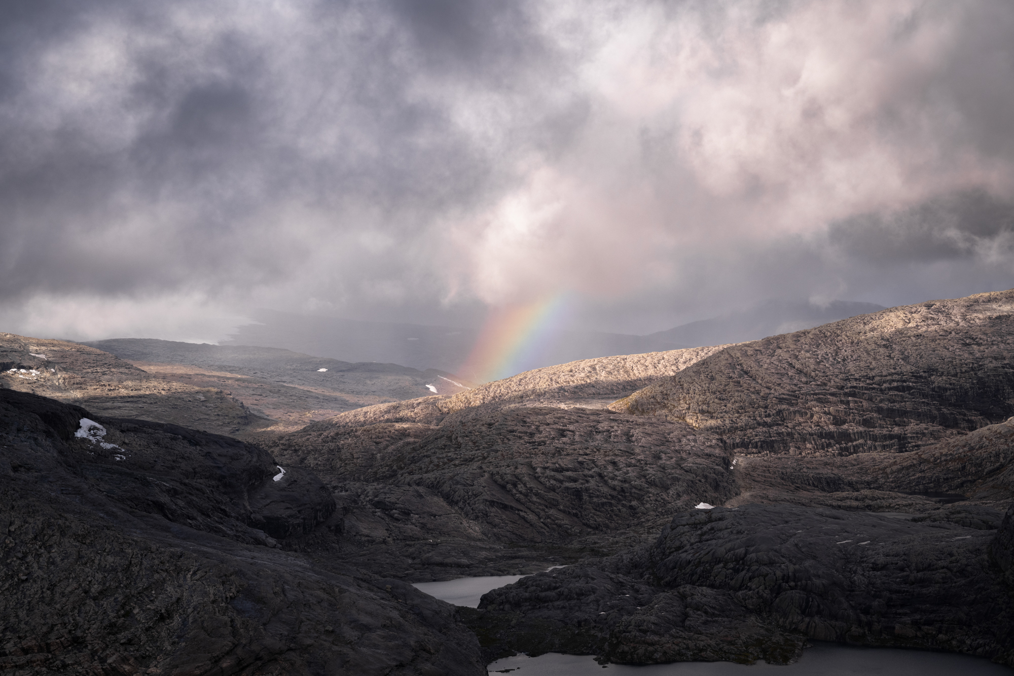 Ce 11 septembre 2023, les pluies torrentielles qui s’abattaient sur la Norvège ne nous laissaient pas beaucoup de perspectives. J’avais pointé une cabane perdue au milieu des montagnes. Il était question d’y passer la nuit. Pour l’atteindre, il y avait environ 7km et 1400m de D+. « Extrême » serait un aphorisme, a fortiori avec les conditions météo. Pourtant est-ce la soif de découverte, l’inconscience ou l’optimisme, nous décidons finalement de nous lancer dans l’ascension. À corps perdus ou à têtes perdues, nous entamons les premiers lacets en fin d’après-midi. Il est déjà trop tard mais les pluies nous laissent un moment de répit. Profitons-en !