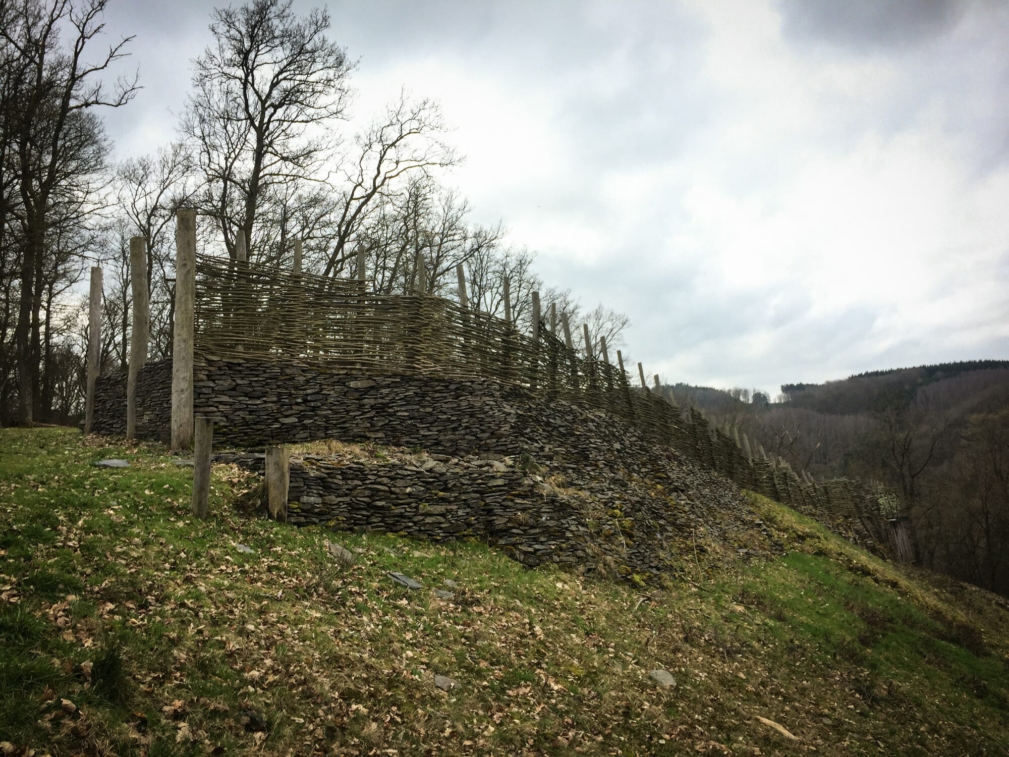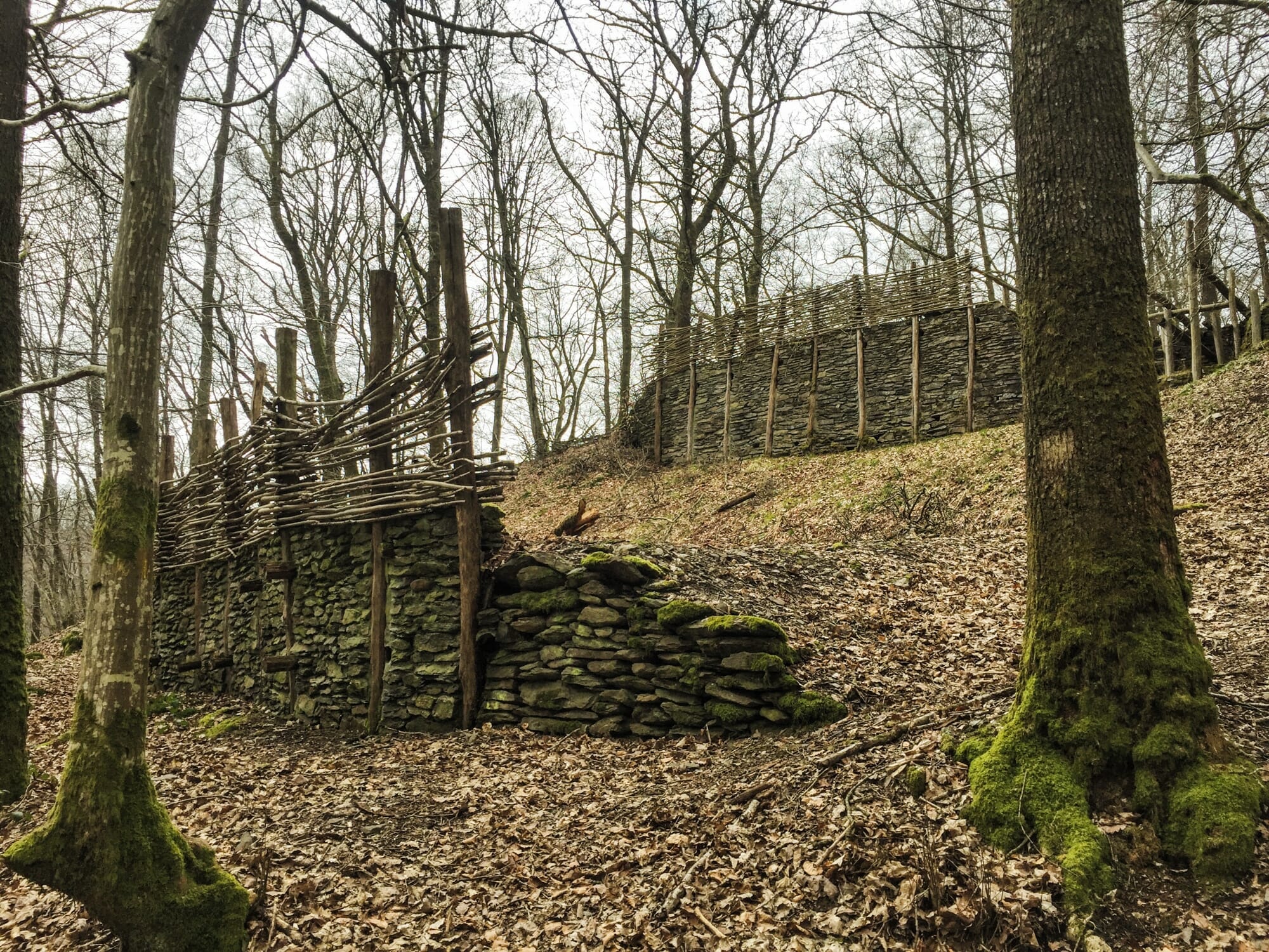 Au milieu d’une forêt dense et mystérieuse, l’imposant oppidum accueille le visiteur avec toute la grandeur que l’Histoire lui a conféré. Le lieu vous renvoie des siècles et des siècles en arrière ; à une époque où les arbres parlaient et colportaient la rumeur des dangers à venir. Et puis, il y a cette pierre perdue dans la banalité de la rampe d’entrée, marquée à jamais par le charroi multiséculaire…