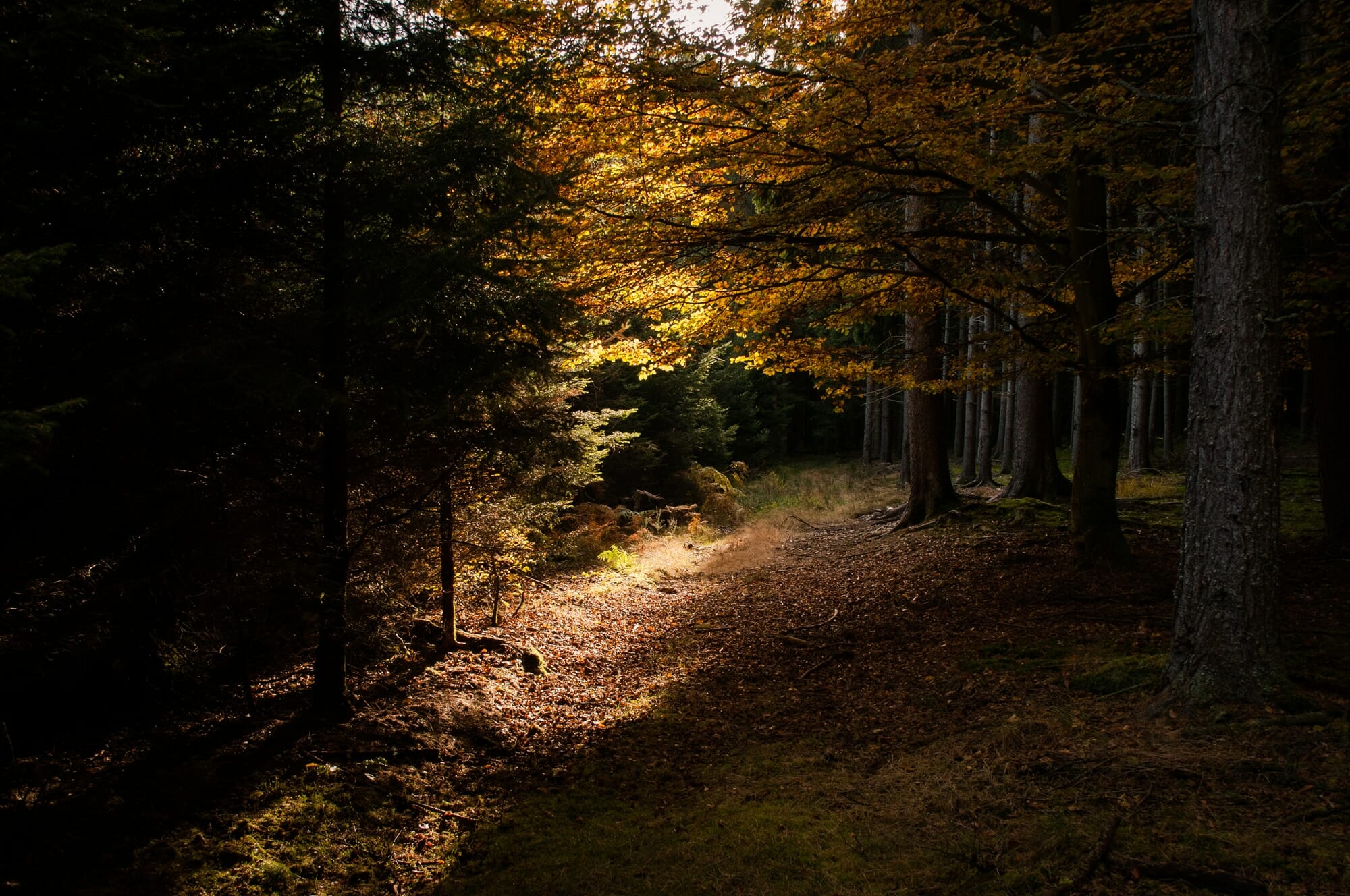 L’obscurité fait partie intégrante de l’Ardenne. Elle lui confère d’ailleurs un contraste pictural sans pareil. Parcourant ces bois en courant ou en marchant, je suis toujours surpris par la puissance des ombres des sapinières. Véritable parenthèse d’abomination, leur traversée n’est jamais chose aisée, même en plein jour. Il y a toujours une bête tapie dans les fourrés pour guetter le rôdeur insouciant. À moins que cela ne soit le fantôme d’une des nombreuses sorcières brûlées vives en Ardenne ?