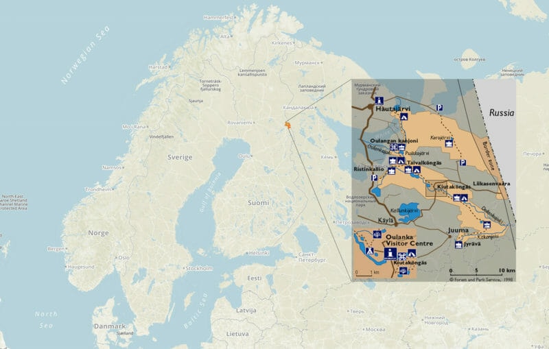 Le Parc national d’Oulanka fait partie des 37 parcs nationaux que compte la Finlande. Perdu en Laponie finlandaise, au niveau du cercle polaire arctique et à 50km au Nord de Kuusamo, ce parc a été le théâtre d’une des plus belles expériences de mon voyage en Scandinavie. En effet, pendant deux jours et en totale autonomie, je suis parti avec mon packraft pour descendre la rivière Oulanka et revenir à mon point de départ via le célèbre Karhunkierros, le sentier de l’Ours. Ce fut une expérience aussi éprouvante qu’inoubliable !