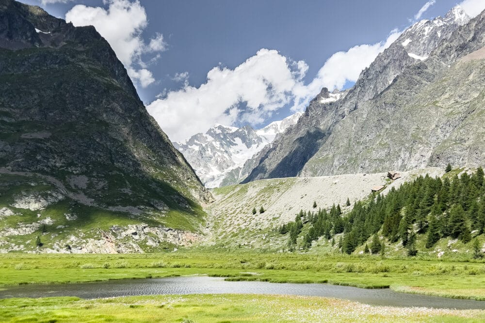 Le départ est donné à 7h du matin. La traversée de Courmayeur me donne des frissons. Cela fait tellement de temps que je n’ai plus vécu ces sensations. C’est unique quand même… Après avoir traversé Courmayeur, on descend la vallée jusqu’au village thermal de Pré-St-Didier. Cette partie n’est pas vraiment la plus intéressante. En effet, on descend la vallée sur un petit sentier longeant la rivière Dora Baltea surplombée par la voie rapide provenant du tunnel du Mont Blanc. Honnêtement, cette partie doit être présente uniquement pour des raisons techniques : allonger le peloton et éviter les embouteillages dans la première côte.