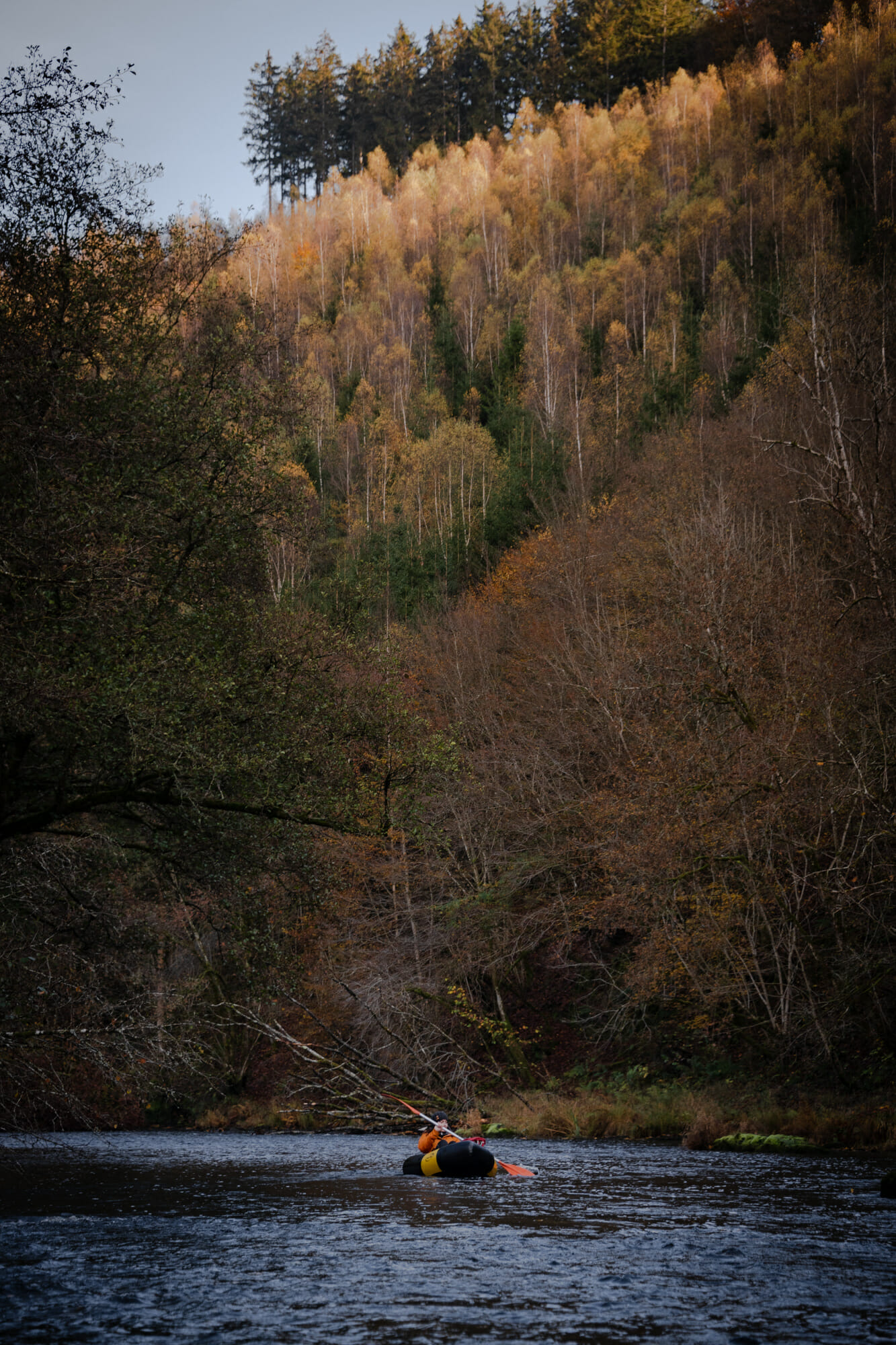 En cette fin d’automne, je me rends en Ardenne pour faire la descente de l’Ourthe en packraft. Après un été sec, on peut enfin profiter d’un niveau suffisant pour s’amuser à travers ses nombreux méandres. Évidemment, l’Ardenne propose d’autres rivières. L’Amblève, la Semois, la Lesse sont autant d’autres prétextes pour aller s’amuser en packraft ou en kayak.