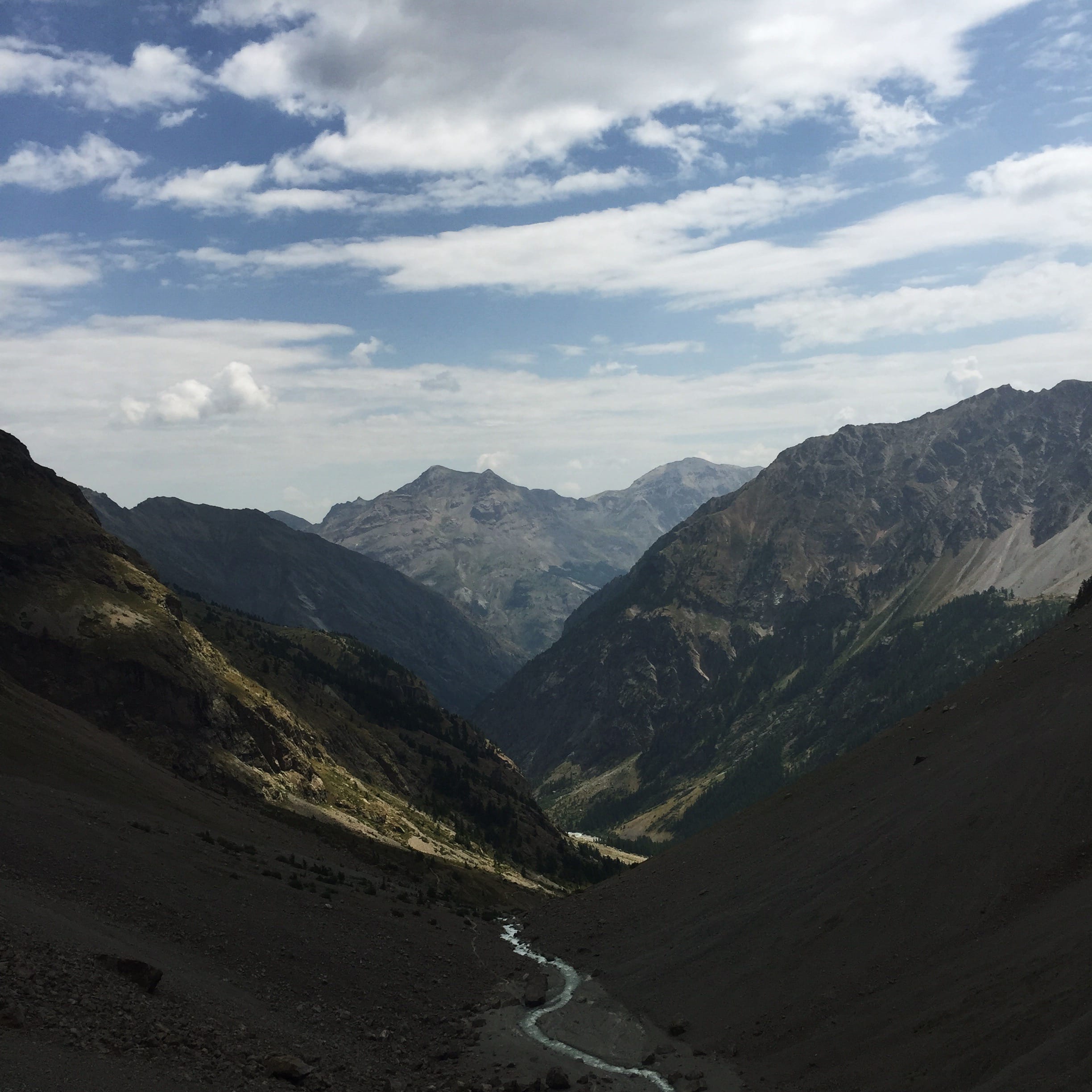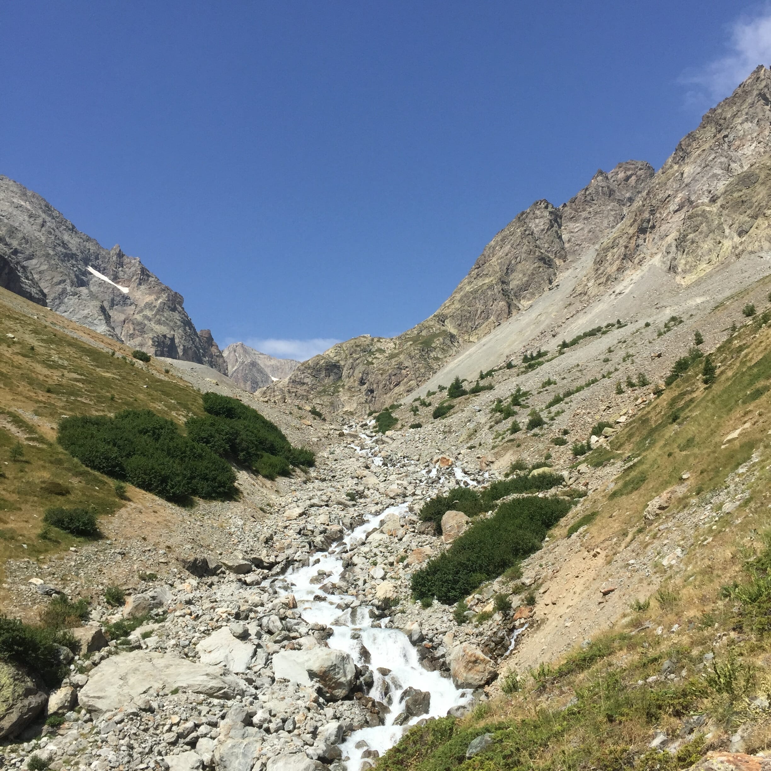 Après avoir laissé le camping (alt. 1500m), vous longerez le torrent de Clapouse à travers les sapins jusqu’à 1800m d’altitude. Là, c’est un magnifique sentier en lacets qui prendra le relais pour vous amener à la jonction avec le sentier menant au refuge du Pelvoux. Après cette intersection, le paysage devient tout de suite beaucoup plus minéral et cassant.