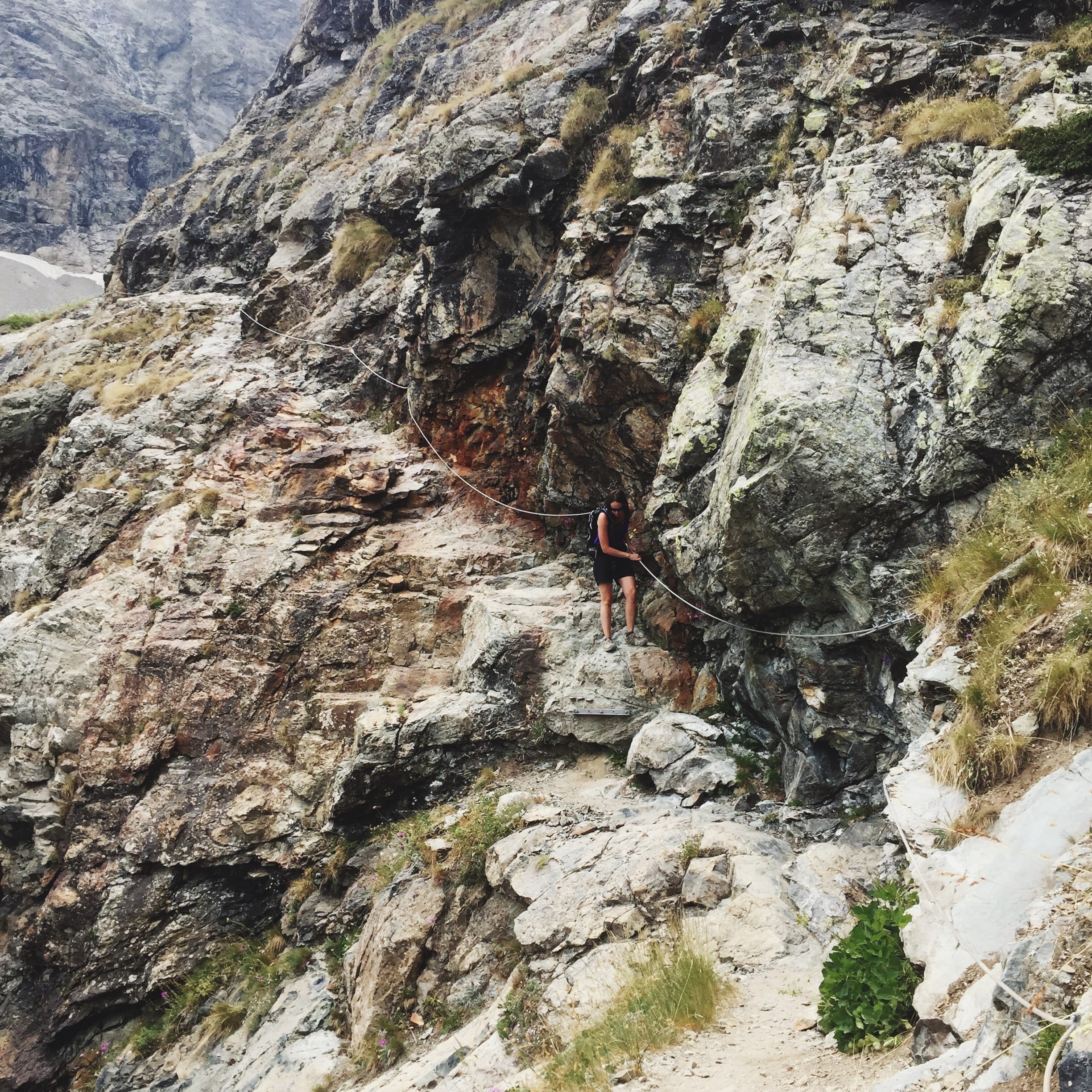 Après cette première difficulté, on entame directement le plat de résistance : 400m de dénivelé très technique et surtout assez exposés. La prudence est réellement de mise surtout avec des enfants. Car, même si le parcours est sécurisé par des câbles, le passage reste dangereux.