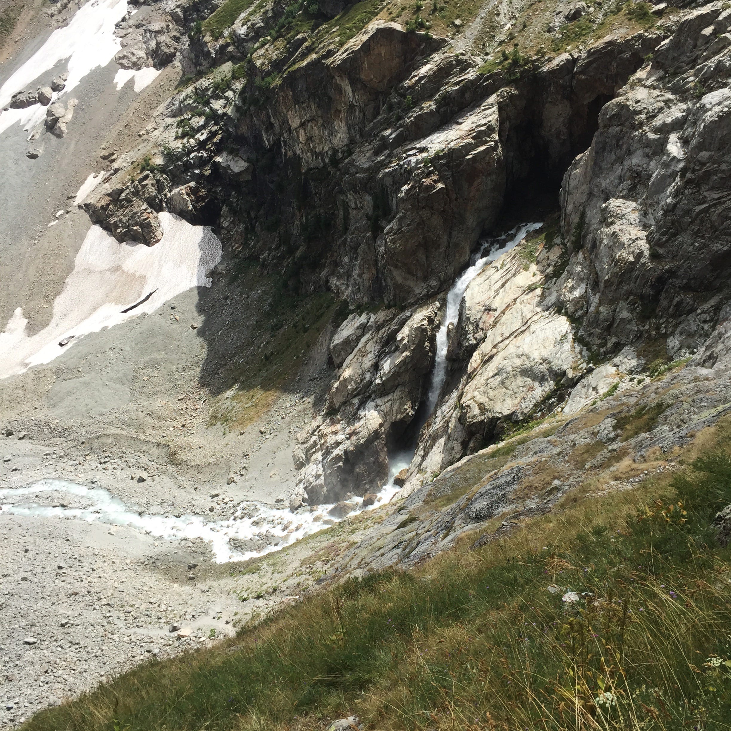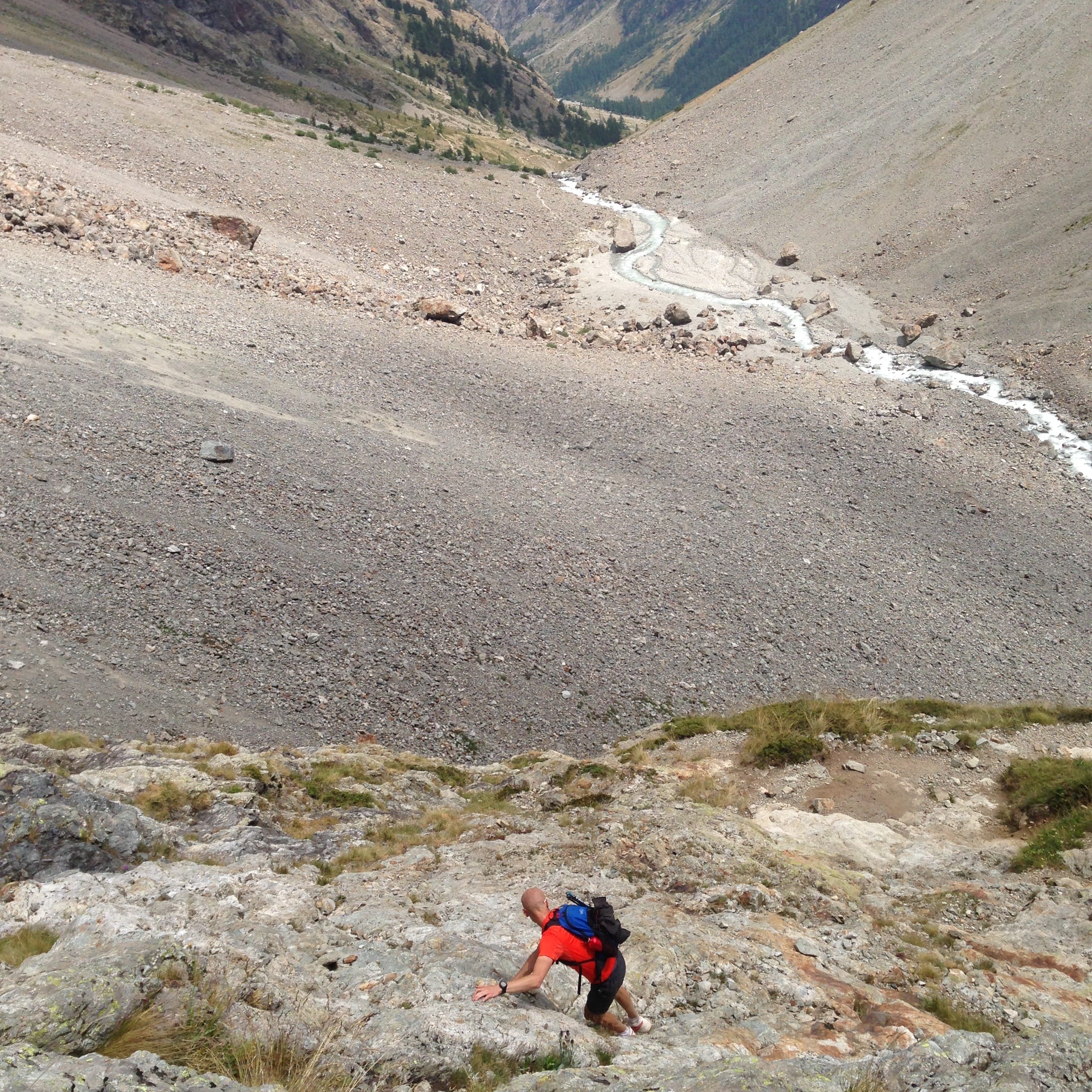 En effet, à 2000m d’altitude, il y a un léger replat caillouteux à souhait et qui débouche sur un pierrier. La prudence est de mise lors de sa traversée car c’est extrêmement cassant. Prudence aux chevilles faibles !