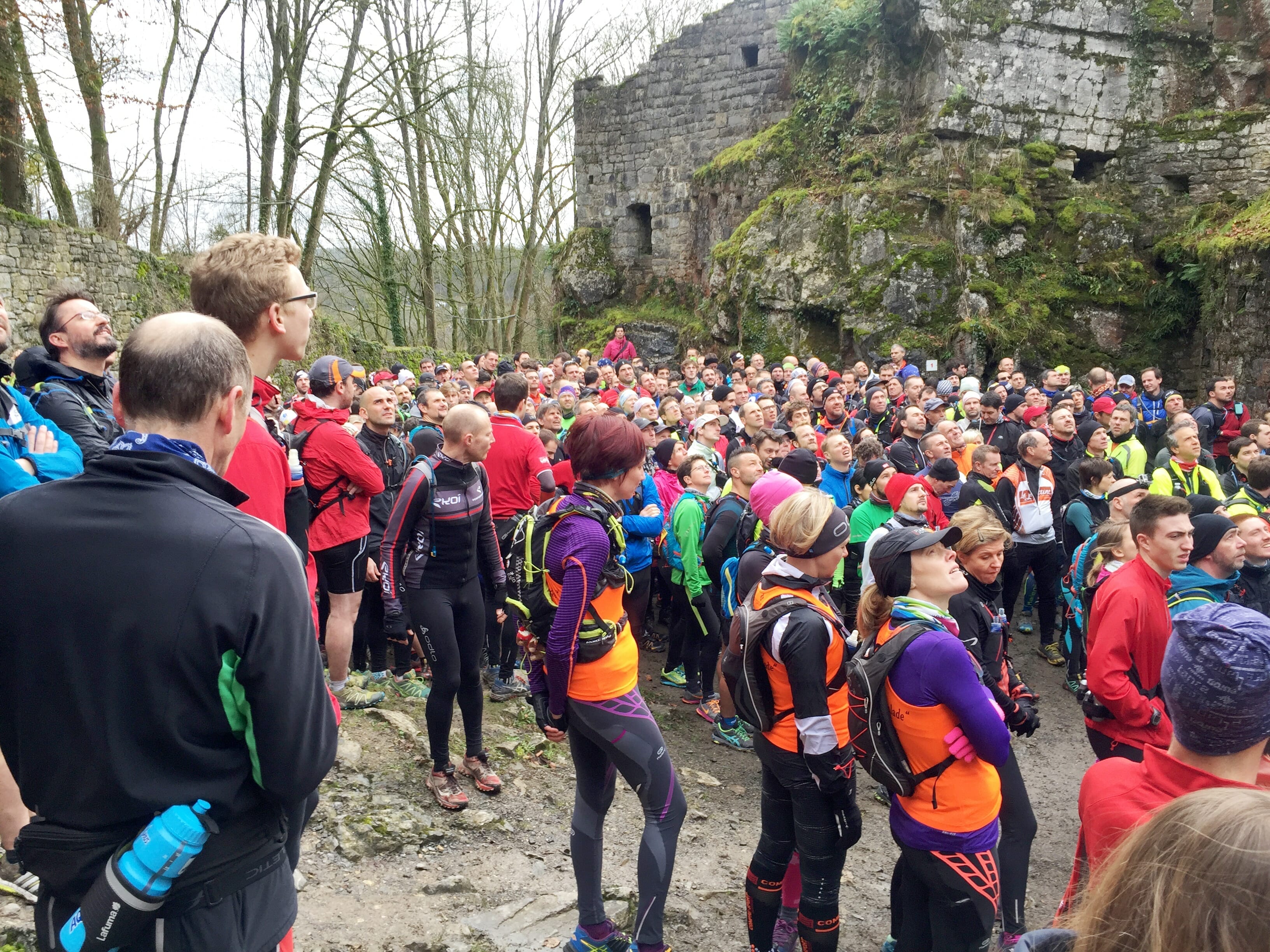 L’équipe “MyRun” est au taquet ! Loin de la classe royale d’un Godefroy de Montmirail mais affublés de nos collants et de nos accessoires, nous ressemblons davantage à une horde de Jacouille La Fripouille. Sautillant avec des chaussures bariolées, comme une myriade de petits lutins, chacune des équipes, cordées, blasons, clans (biffez la mention inutile) attend son tour avant d’être lâché dans la nature sauvage et “déniveleuse” de la région d’Hamoir.