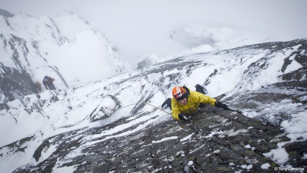 Ueli Steck évolue sur les parois les plus hautes et les plus engagées du monde à une vitesse à peine croyable et surtout un matériel extrêmement léger. Il fait tomber les recors comme les règles établies depuis des décennies dans le monde de l’alpinisme. Ses records sont à peine croyable : 28h pour la Face Sud de l’Annapurna (8091m), 2h22 pour l’Eiger, 2h21 pour la face Nord des Grandes Jorasses, 1h56 pour la face Nord du Cervin.
