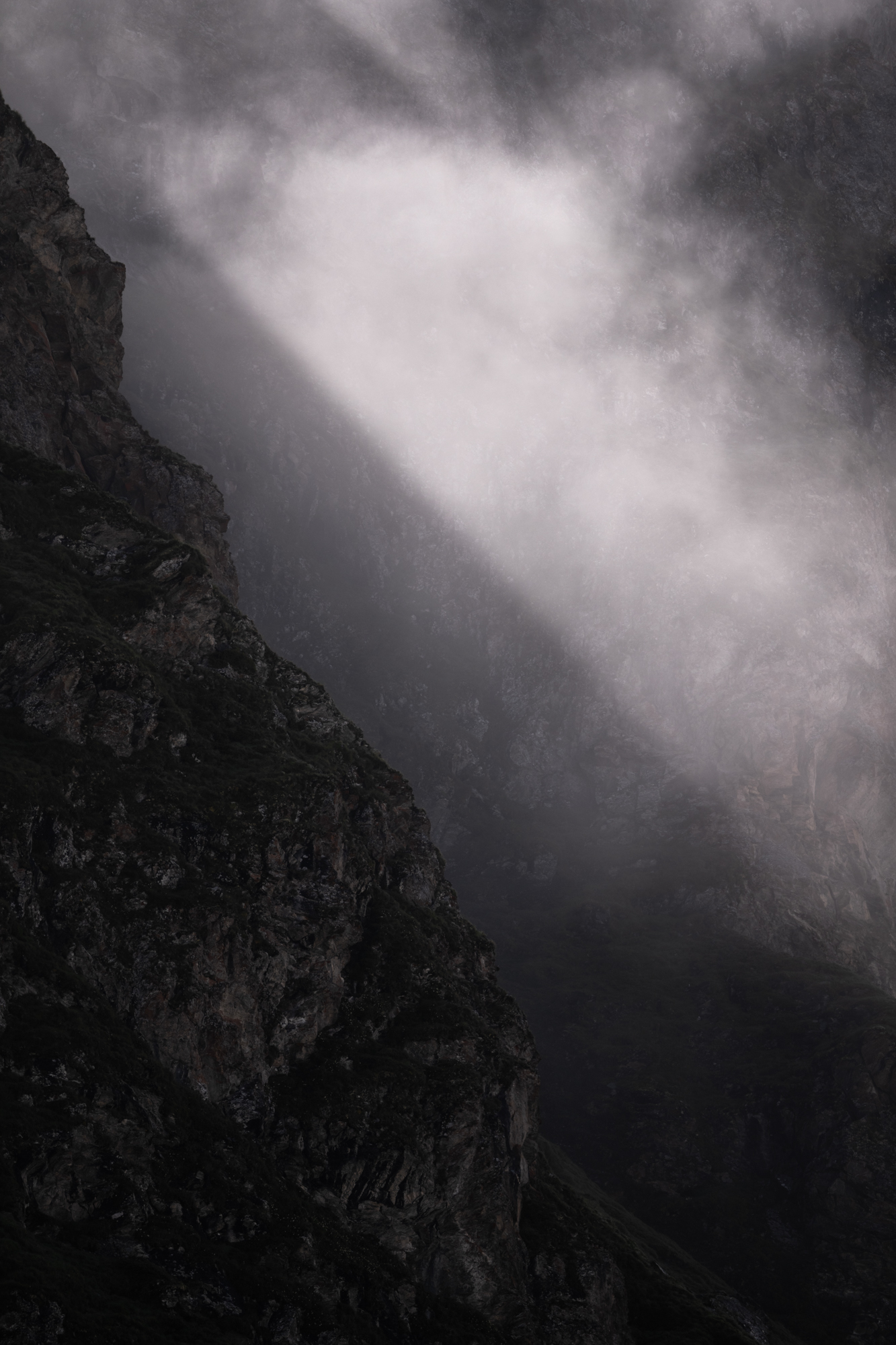 Au petit matin, le ciel s’est déchiré pour se laisser envahir par le soleil et offrir un spectacle de contraste sur la vallée et les sommets environnants.