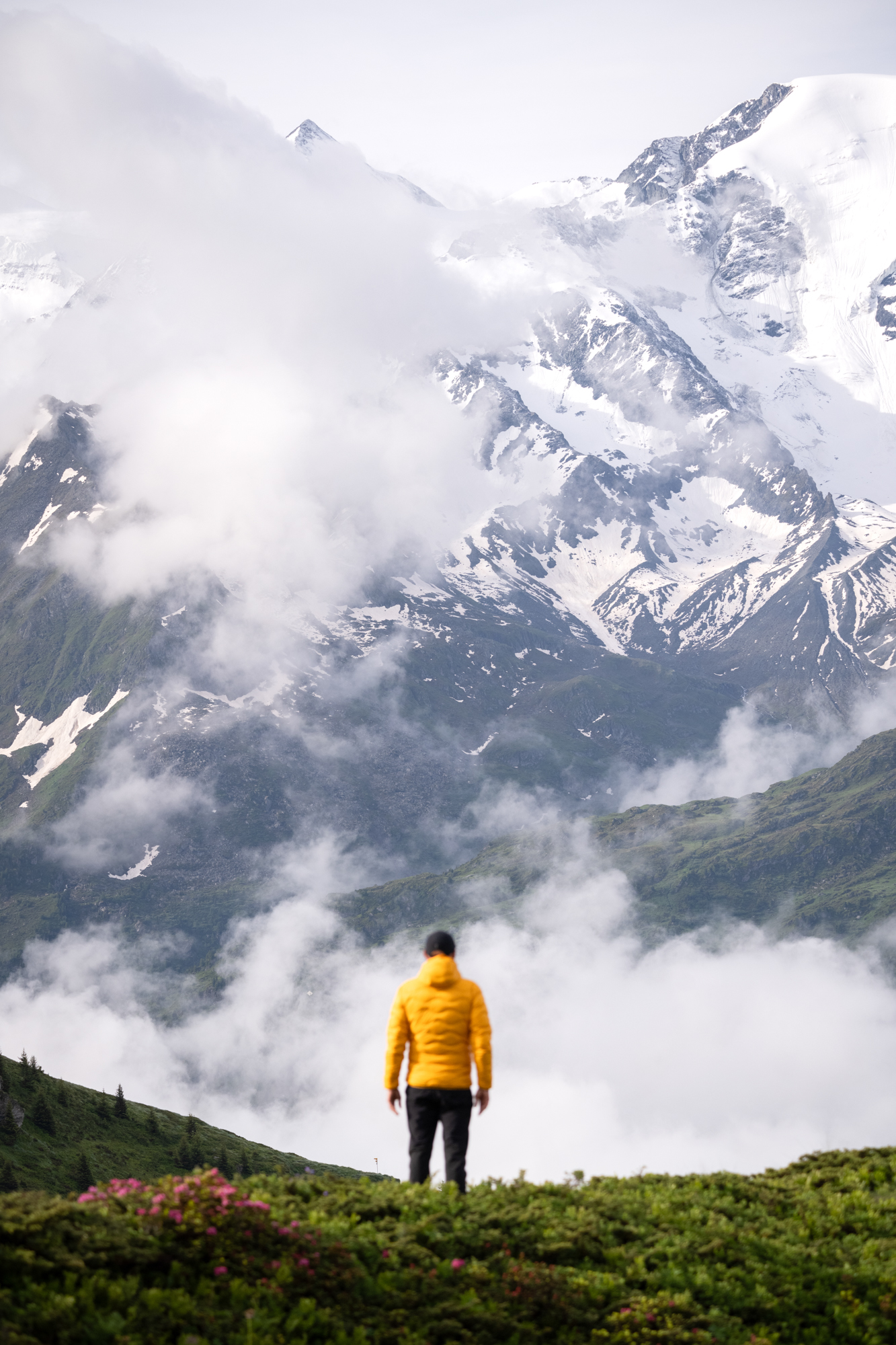 Passer une nuit en montagne sera toujours un pur ravissement, on s’extraie du monde des hommes pour prétendre à toucher les cieux. Pour le coup, le ciel nous était tombé sur la tête. Alors entre deux averses, je passais la tête à l’extérieur. de temps à autre, le ciel se déchirait et laissait entr’apercevoir l’absolue beauté des lieux. Je ne pouvais m’empêcher de sortir capturer ces instants hors du temps. Puis, nous avons profité de l’excellent repas et de l’accueil extraordinaire du couple de gérants. Face à cette vue unique sur Verbier et sa vallée, il n’est pas étonnant d’apprendre que le Roi des belges (le roi de nous) prend plaisir à passer du temps dans cet endroit unique.
