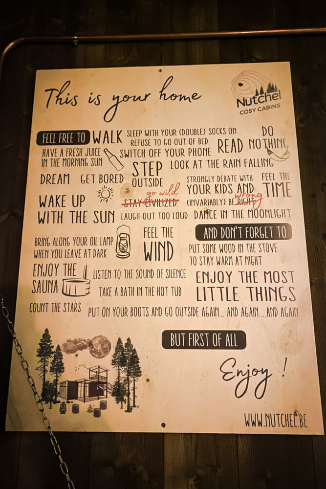 Vous commencez à connaître passion pour les cabanes. Dès que je vais en Scandinavie, je ne peux m’empêcher d’aller passer une nuit couper du monde que cela soit dans un vieux phare dans les Alpes de Lyngen, dans une cabane en bois sur l’île de Senja ou encore lors de mon expédition packraft en Laponie finlandaise. Les cabanes Nutchel ne sont pas si différentes. Ici aussi, il n’y a point d’eau courante, d’électricité (ou très peu) mais plutôt la simplicité d’un poêle à bois et d’un éclairage à la bougie… Bref, c’est un peu l’âme scandinave au sud de la Belgique.