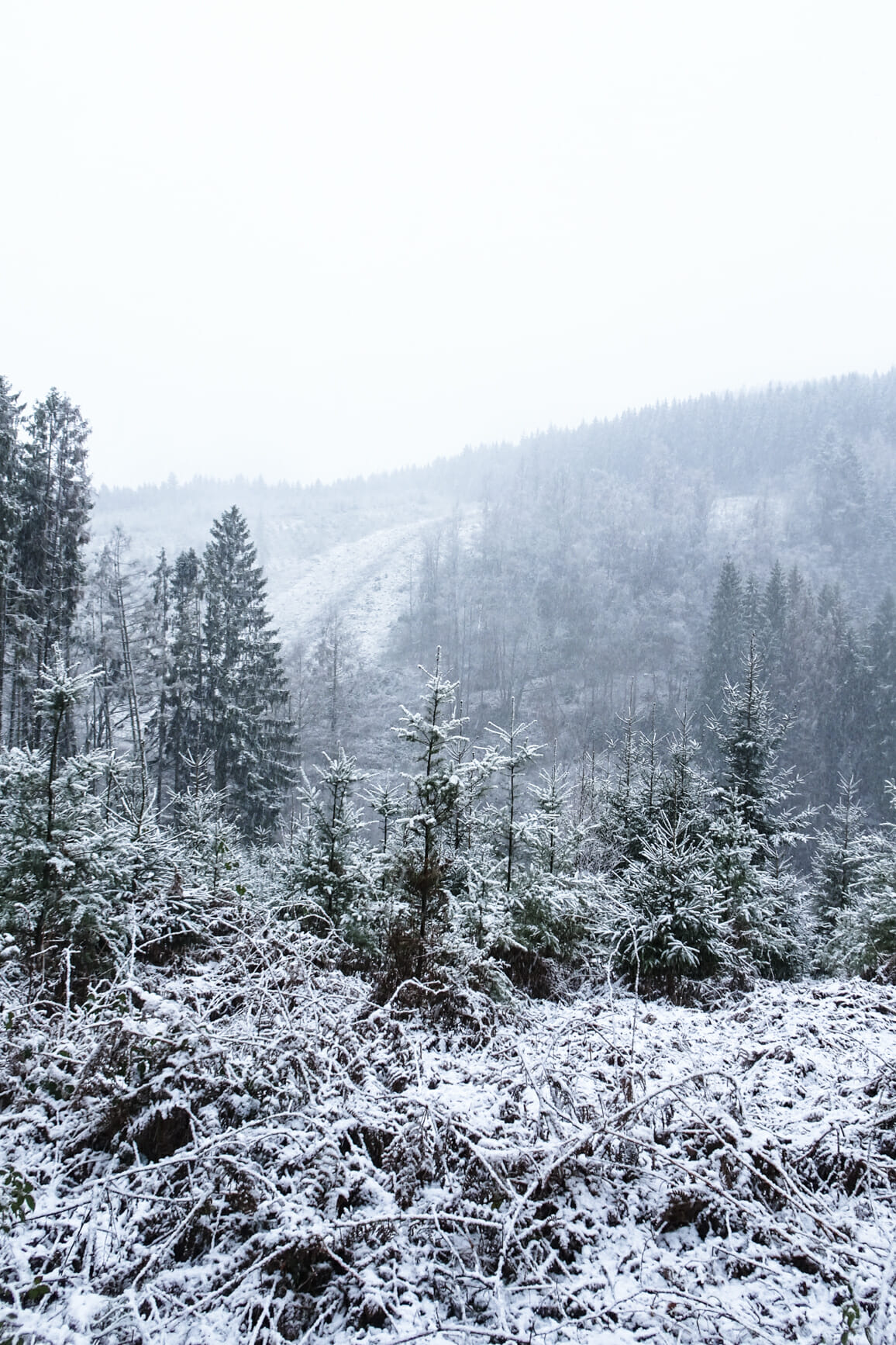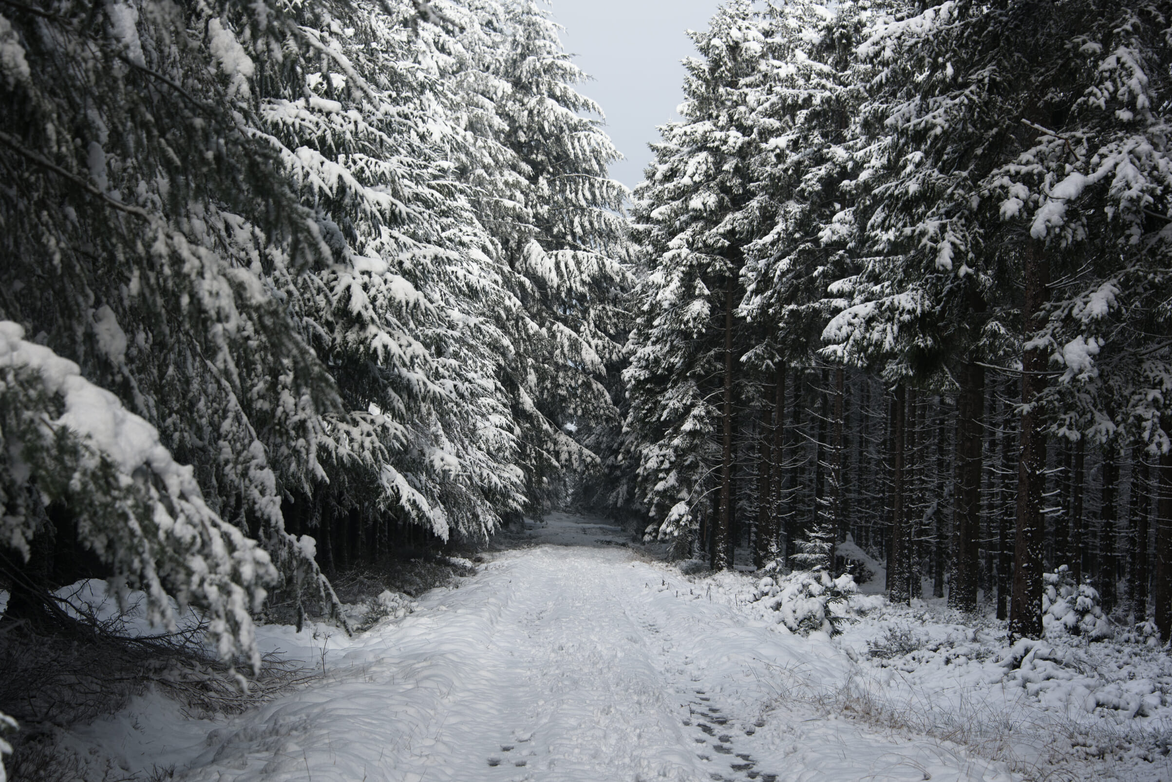 Redescendant sur le village de Goronne, le parcours que je vous ai concocté s’enfonce pendant 14km dans la forêt sans en sortir. Cette dernière n’est peut être pas la plus impressionnante que j’ai vue, la faute à son exploitation très développée. Pourtant, les ambiances qui s’en dégagent en cette journée d’hiver ne nous laissent pas indifférents.